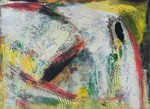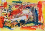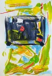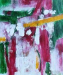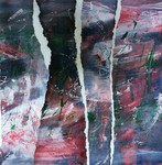 2018Collgae of paint and paper in red-green.