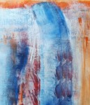 2018Collage of paper and paint in red-blue.